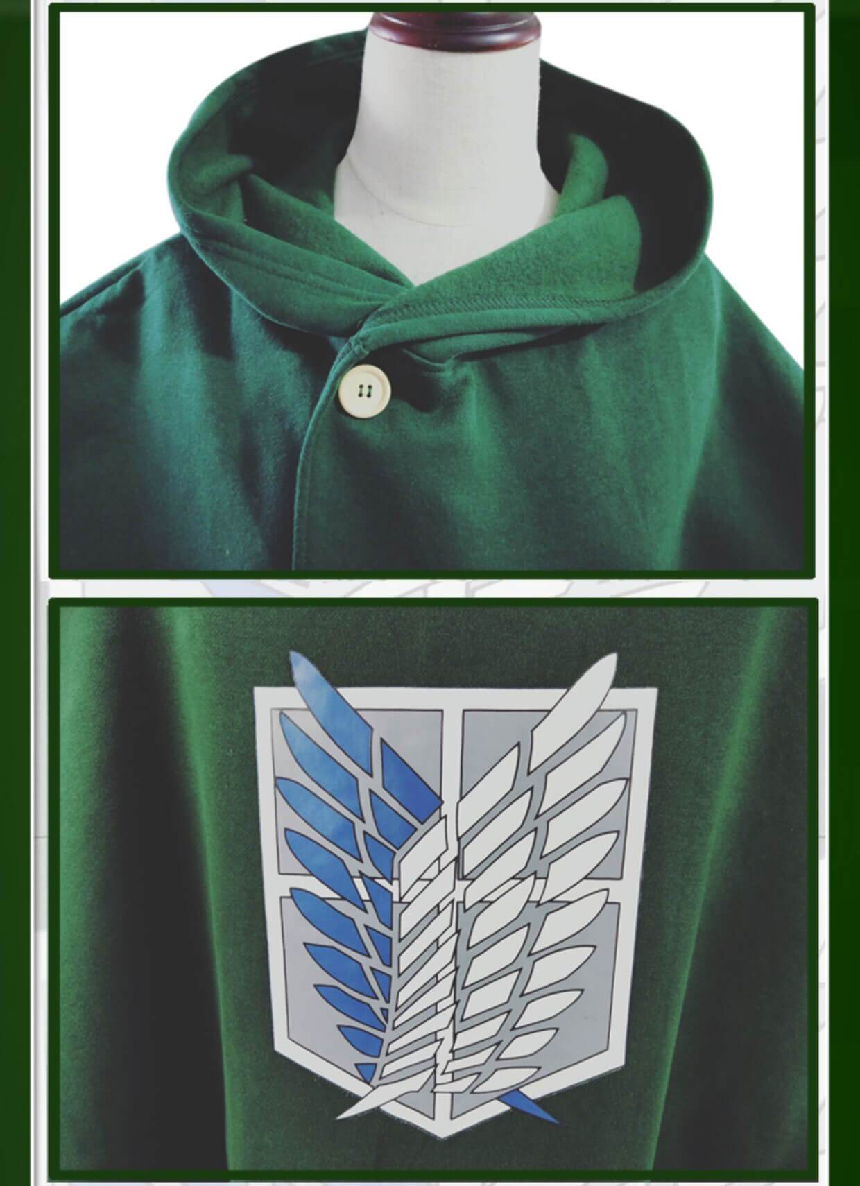 · Name: Embroidery Attack on Titan Cloak Hoodie Shingeki no Kyojin Hoodie AOT Cape Scouting Legion Cloak Cool Green Cape Unisex Anime survey corps Levi Misaka Eron