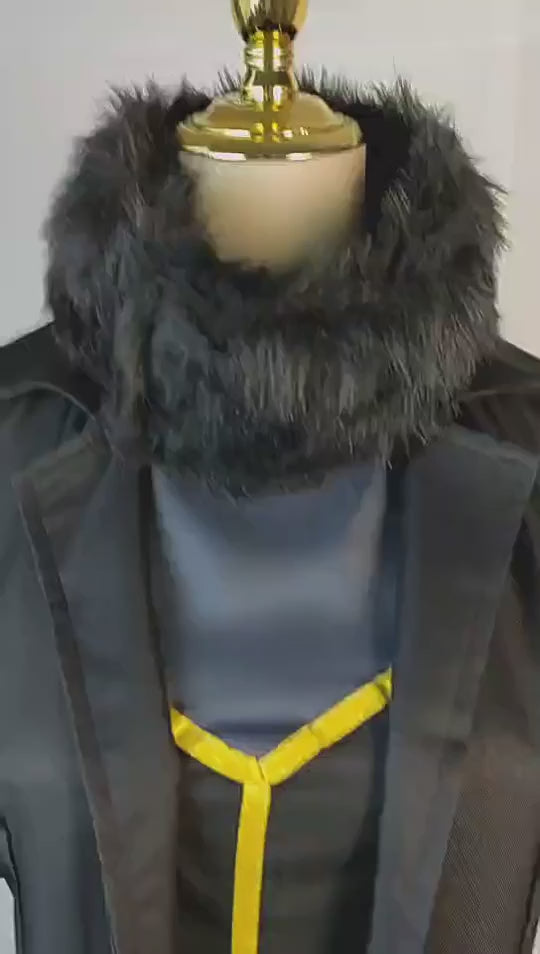 - Full set: long sleeve lining, trousers, fur collar, short sleeve trench coat, gauntlets, belt
