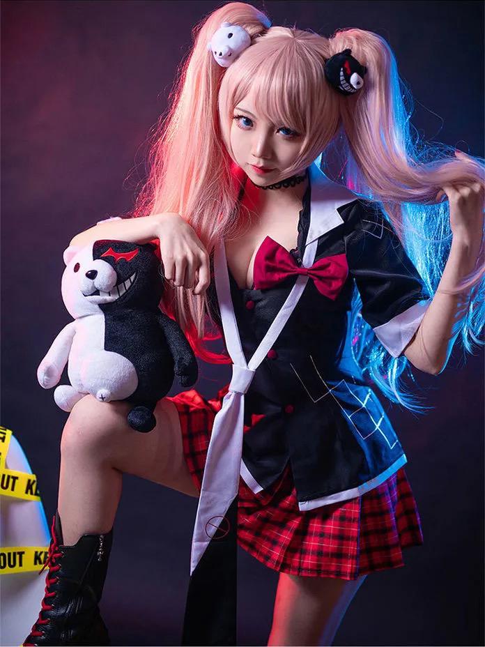 Enoshima Junko Cospaly Costume Danganronpa Cos Full set Junko Enoshima Loli Skirt Black White Bear Doll