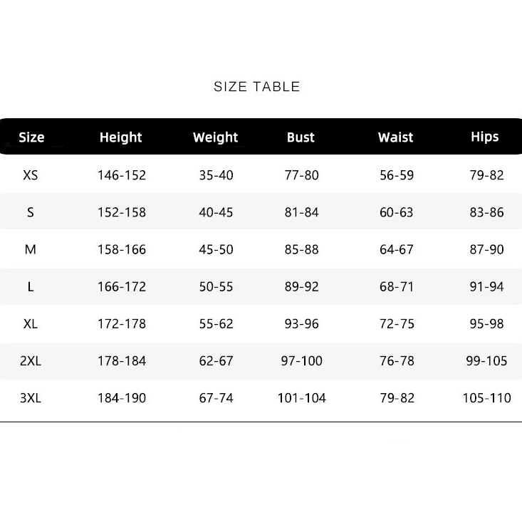· Size: XS,S, M, L, XL, 2XL, 3XL