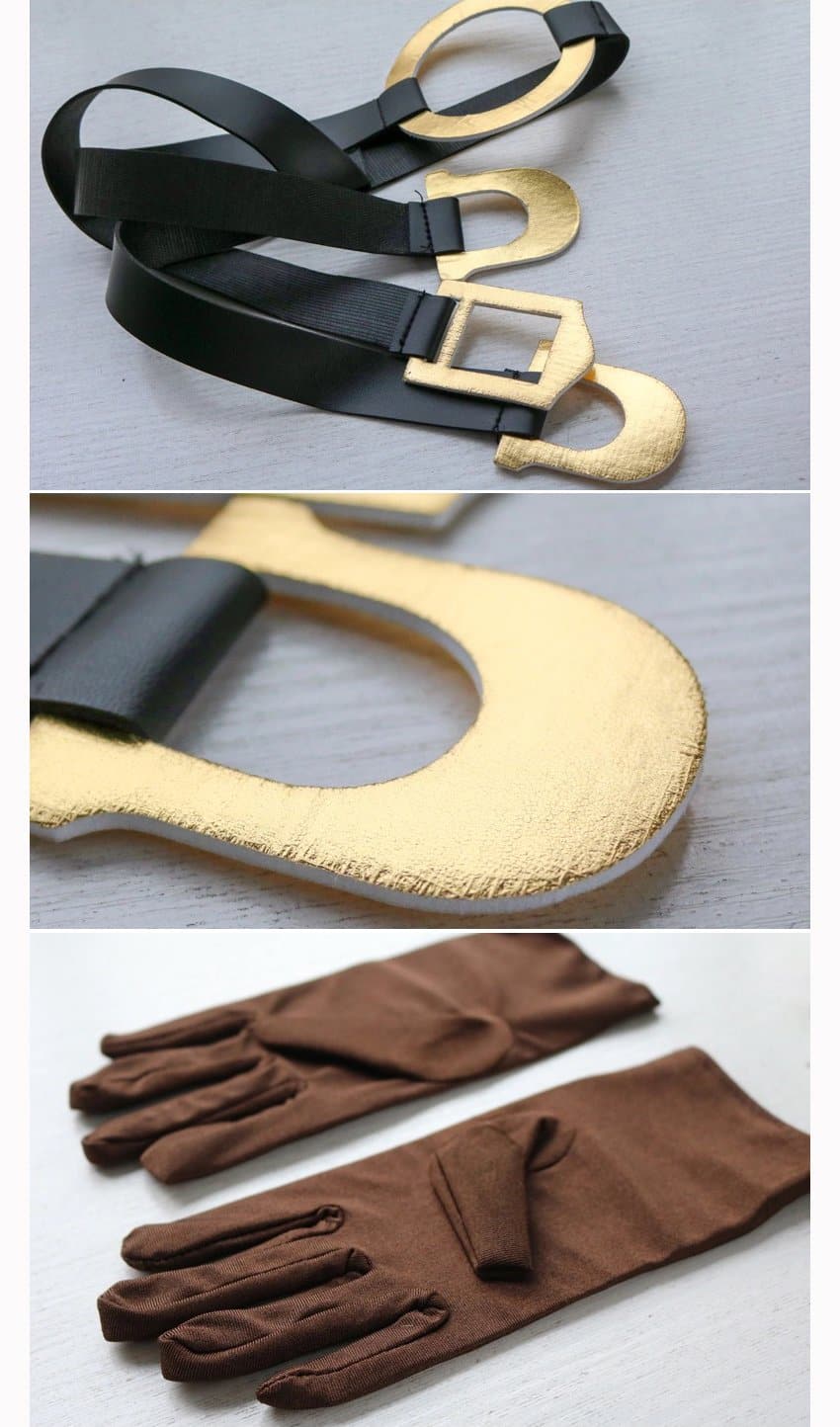 - The full set includes: dress + top coat+ back bow + shoulder strap +leggings + neckerchief + bow + gloves, wig